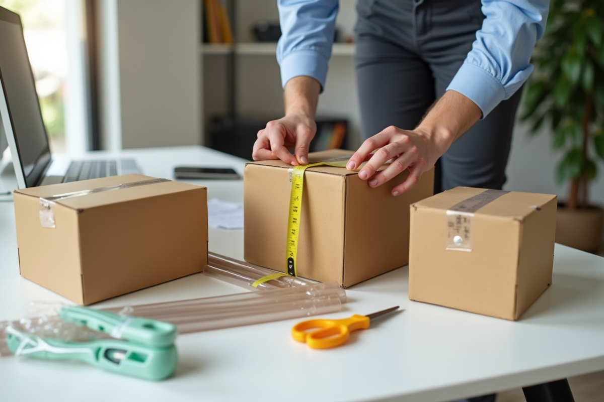 Commencez par mesurer votre produit avec précision. La longueur, la largeur et la hauteur forment la base du choix. Ajoutez systématiquement une marge de sécurité – quelques centimètres qui feront place aux protections : papier bulle, mousse, coussins d’air.