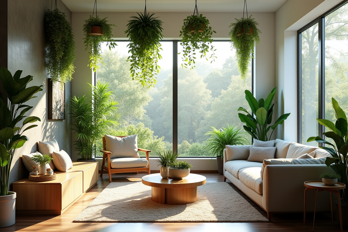 Les suspensions et macramés sont des alliés de choix pour mettre en valeur vos plantes retombantes. Accrochés au plafond ou aux murs, ils créent un effet de légèreté et optimisent l’espace vertical. Privilégiez des matériaux naturels comme le coton ou le lin pour un rendu authentique et chaleureux.