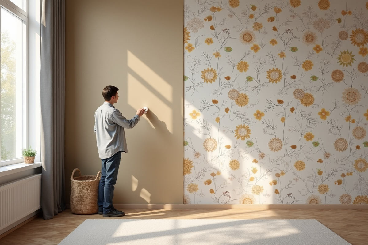 La préparation, c’est la clé du succès. Le mur doit être impeccable : lisse, sec, propre. Ancien revêtement arraché, traces lessivées, irrégularités comblées. Un cutter qui tranche net, une brosse à maroufler précise, un niveau à bulle fidèle : votre arsenal pour une pose sans accroc.